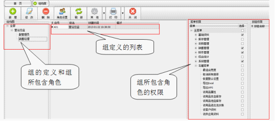 注意:其他权限(功能权限)是在用户权限设置中定义的,在角色和组定义中都不能设置。